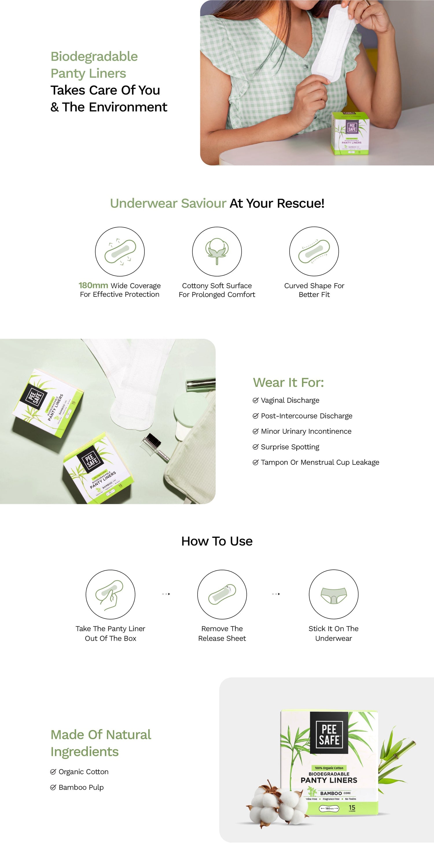 100% Organic Cotton With Extra Cottony-Soft Curved Shaped Surface For Vaginal Discharge