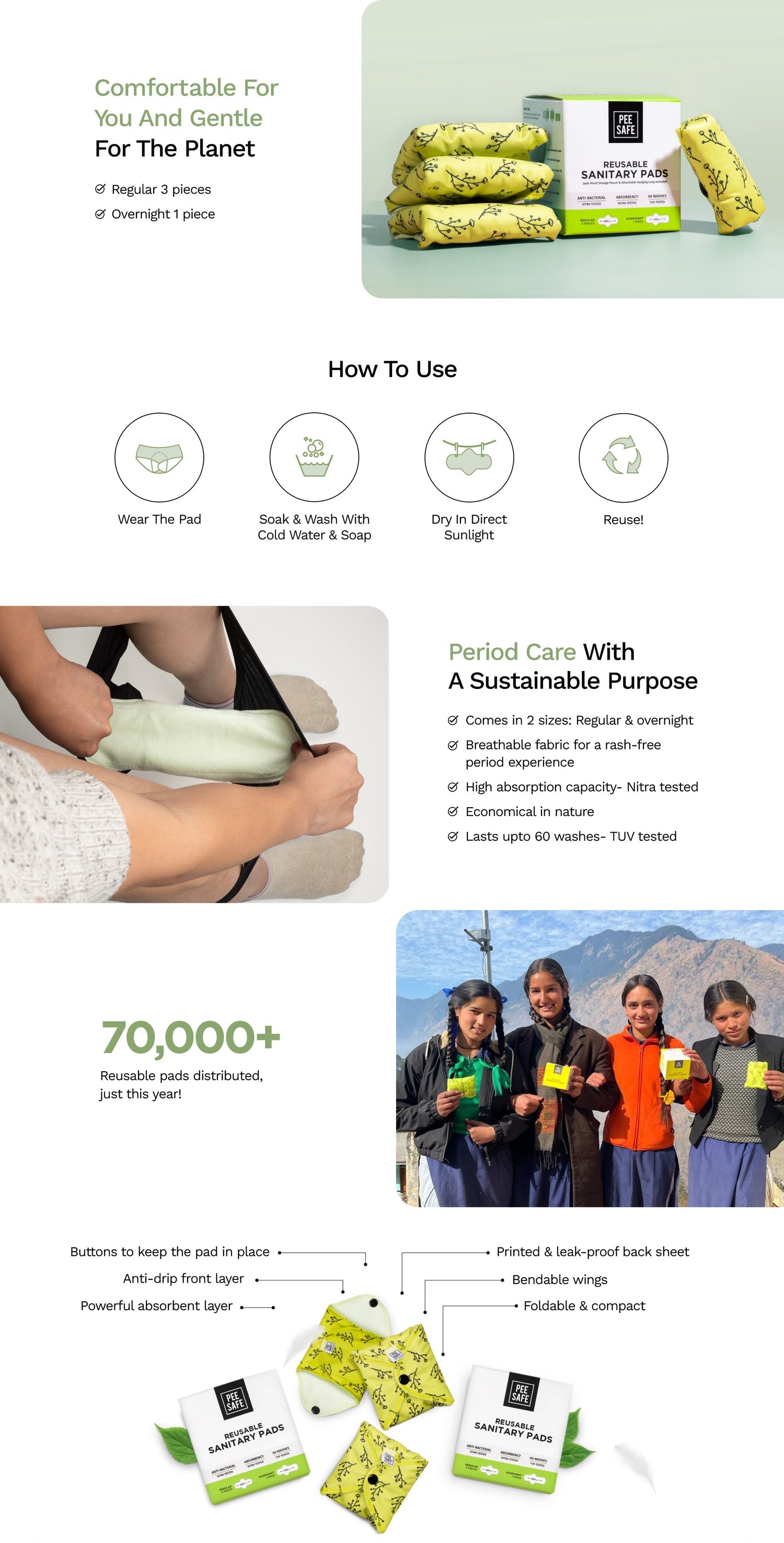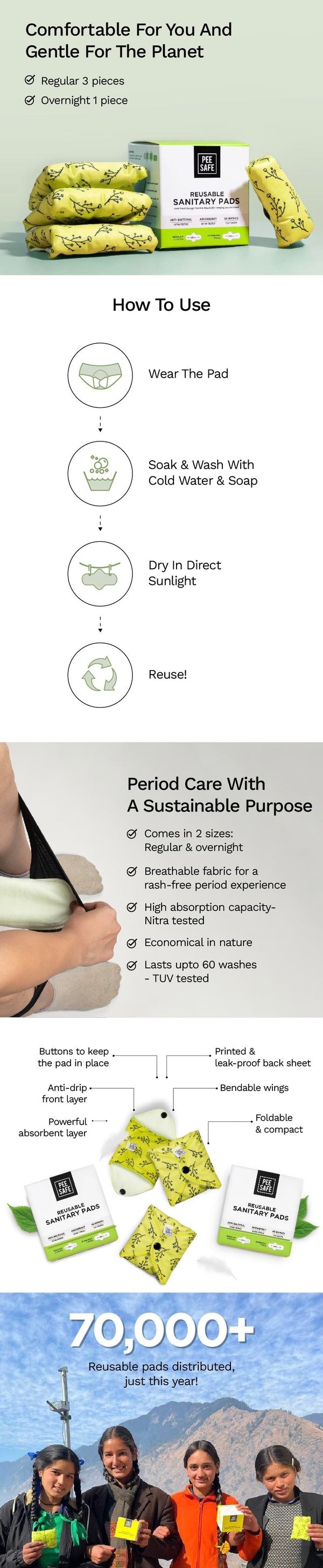 Reusable Sanitary Pads (6 Regular Pads + 2 Night Pads) - Pack of 2